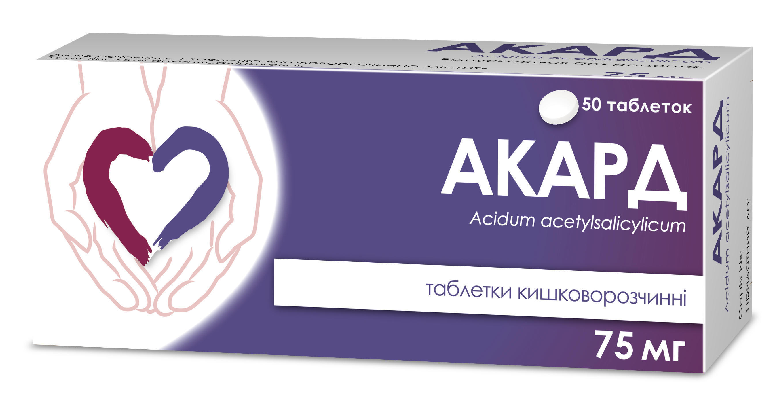 Акард таблетки, вкриті кишковорозчинною оболонкою, лікарська форма, яка не розчиняється у шлунку, через що знижується ризик безпосереднього контакту ацетилсаліцилової кислоти зі слизовою оболонкою шлунка. Розчинення таблетки та вивільнення діючої речовини відбуваються тільки у більш лужному середовищі дванадцятипалої кишки.