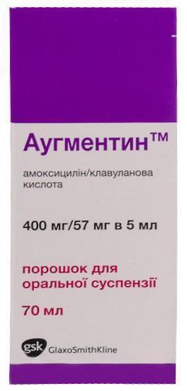 5 мл суспензії містять амоксициліну (у формі амоксициліну тригідрату) 400 мг і кислоти клавуланової (у формі калію клавуланату) 57 мг;