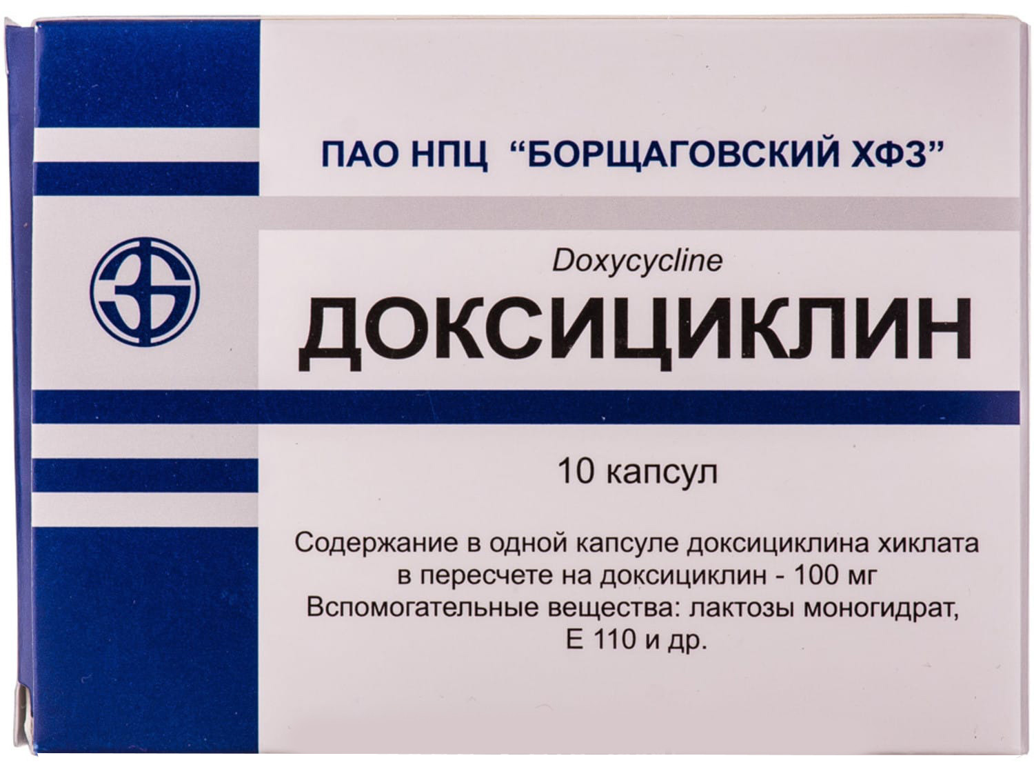 Доксициклін – напівсинтетичний антибіотик групи тетрациклінів широкого спектра дії. Зумовлює бактеріостатичну дію за рахунок пригнічення синтезу білка збудників у результаті блокування зв’язку аміноацил-транспортної РНК (тРНК) з комплексом «інформаційна РНК (іРНК) – рибосома».