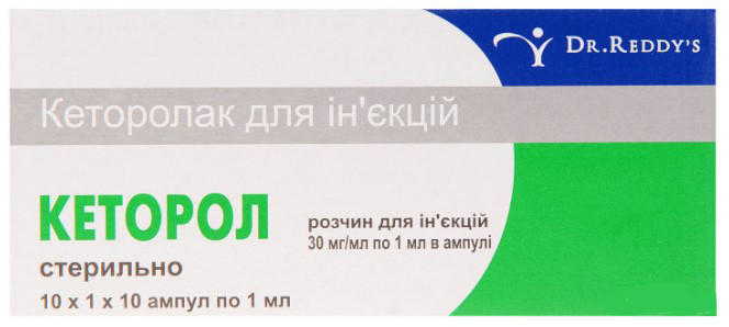 Кеторолаку трометамін є рацемічною сумішшю [˗]S- та [+] R-енантіометричних форм, причому аналгетична активність обумовлена S-формою. Після внутрішньом’язового введення кеторолак швидко та повністю абсорбується. Середня максимальна плазмова концентрація у 2,2 мкг/мл досягається у середньому через 50 хв після введення одноразової дози 30 мг.