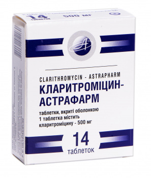 Кларитроміцин-Астрафарм таблетки вкриті оболонкою по 500 мг 2 блістера по 7 шт