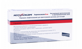 | Склад: діюча речовина:lornoxicam; 1 флакон містить 8 мг лорноксикаму; допоміжні речовини: маніт (Е 421), трометамол, динатрію едетат.