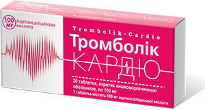 Гострий інфаркт міокарда: у разі гострого інфаркту міокарда застосовувати 200–300 мг ацетилсаліцилової кислоти у внутрішньовенній або пероральній формі зі швидким вивільненням ацетилсаліцилової кислоти (не кишковорозчинну форму). Таблетки кишковорозчинної форми ацетилсаліцилової кислоти слід подрібнити або розжувати перед застосуванням для досягнення більш швидкої абсорбції. Після цього слід застосовувати щодня 100 мг препарату Тромболік-Кардіо.