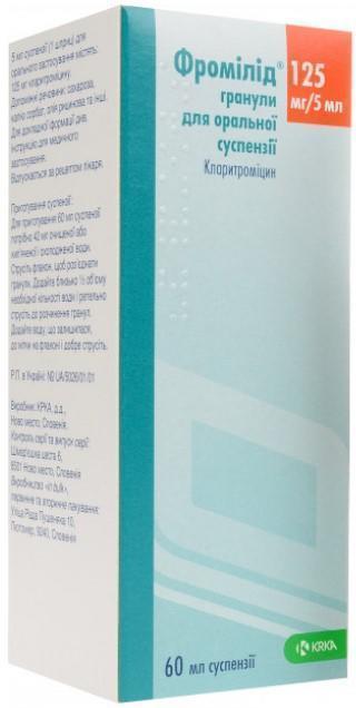 **Доцільно застосування препарату Фромілід® з дозуванням 250 мг/5 мл.