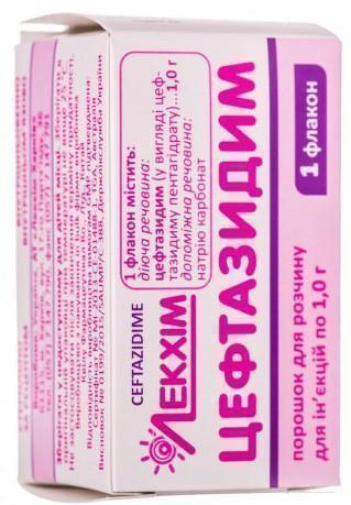 1флакон містить цефтазидиму (у вигляді цефтазидиму пентагідрату) 1,0г;